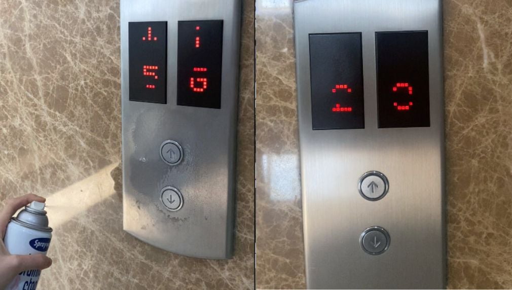 Hình ảnh minh hoạ sử dụng hoá chất phù hợp cho việc vệ sinh thang máy