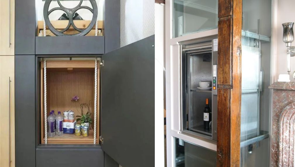 Điểm đặc biệt ở loại thang này là chuyên lắp đặt ở vị trí không gian bếp, để giúp quá trình vận chuyển thức ăn nhanh hơn và đảm bảo an toàn.