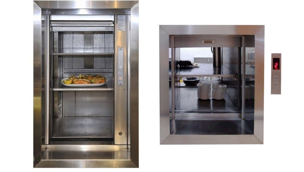 Thay vì mở theo hướng ngang hoặc dạng lùa thì loại này có cách mở cửa đặc biệt từ trên xuống. Đây là loại cửa phù hợp với những thang máy vận chuyển thực phẩm trong nhà hàng, khách sạn.