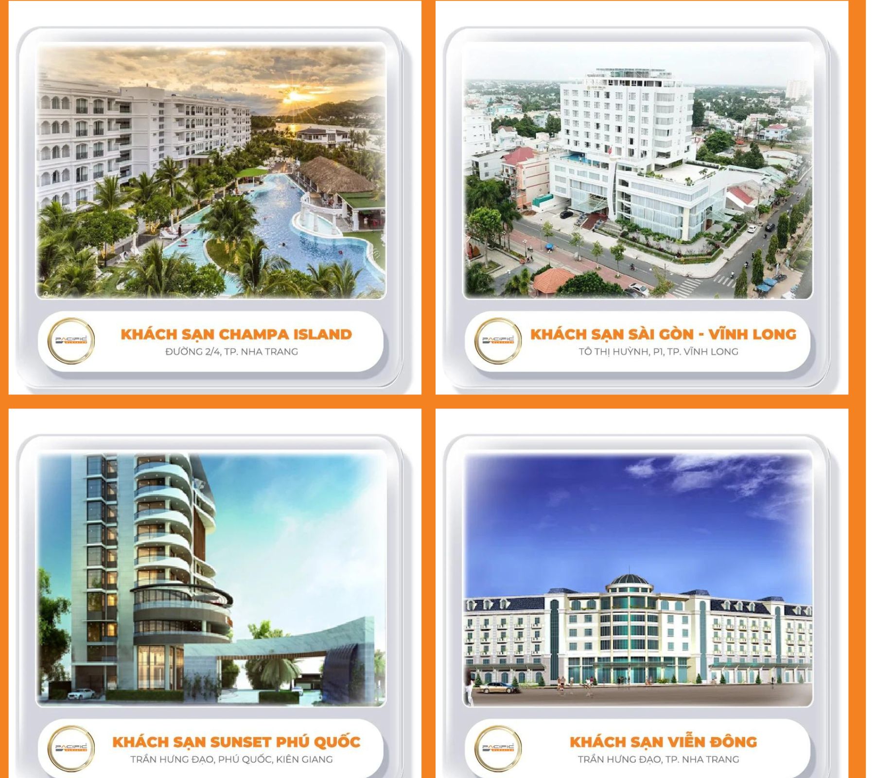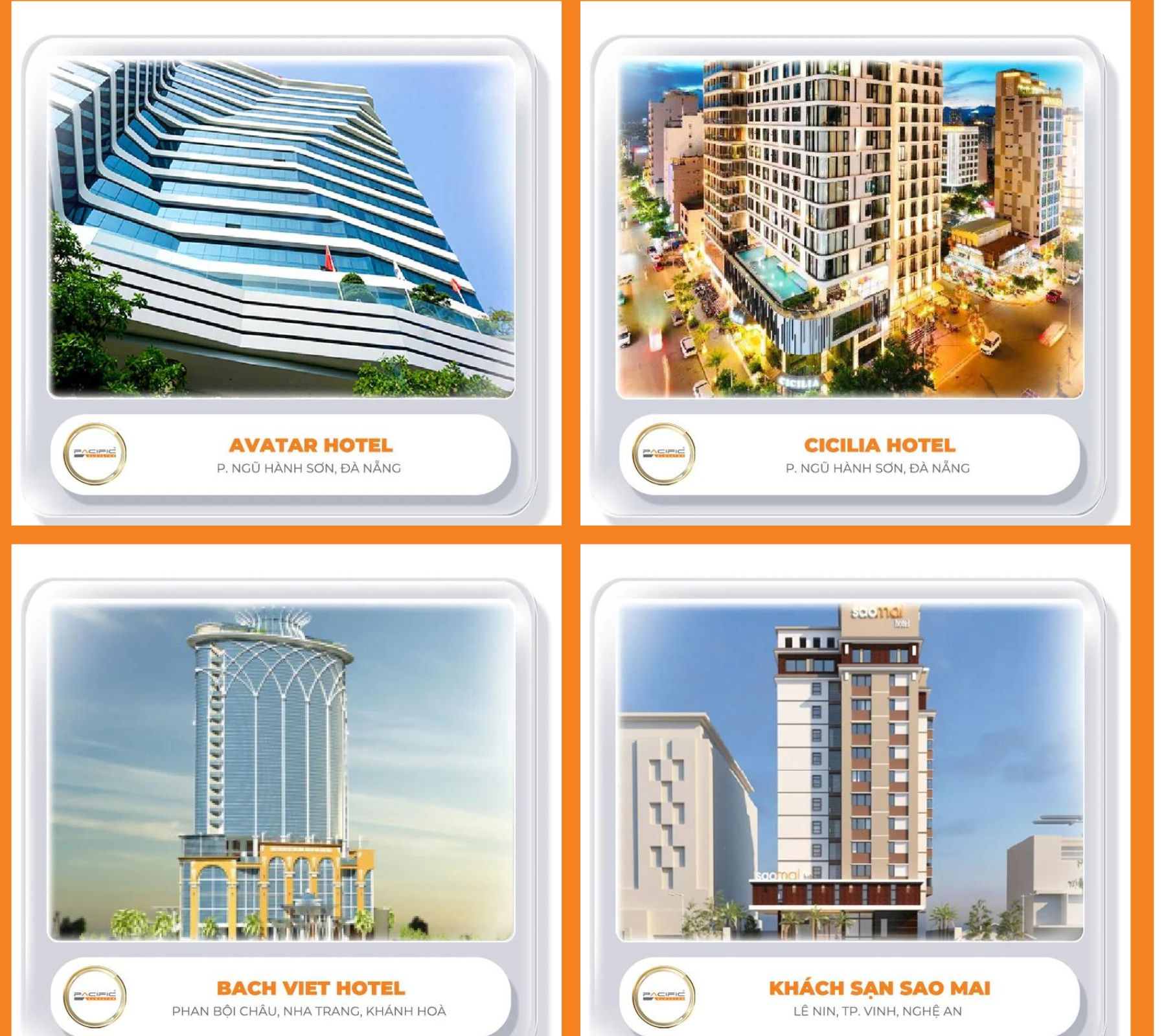 Không ngừng cập nhật công nghệ, chúng tôi luôn tiên phong trong việc ứng dụng những giải pháp thang máy hiện đại và thông minh nhất. Với kinh nghiệm 30 năm, Thang Máy Pacific đã và đang góp phần nâng cao chất lượng sống và trải nghiệm tiện nghi cho hàng triệu người Việt. Dưới đây là một số dự án thang máy khách sạn do Thang Máy Pacific thực hiện: