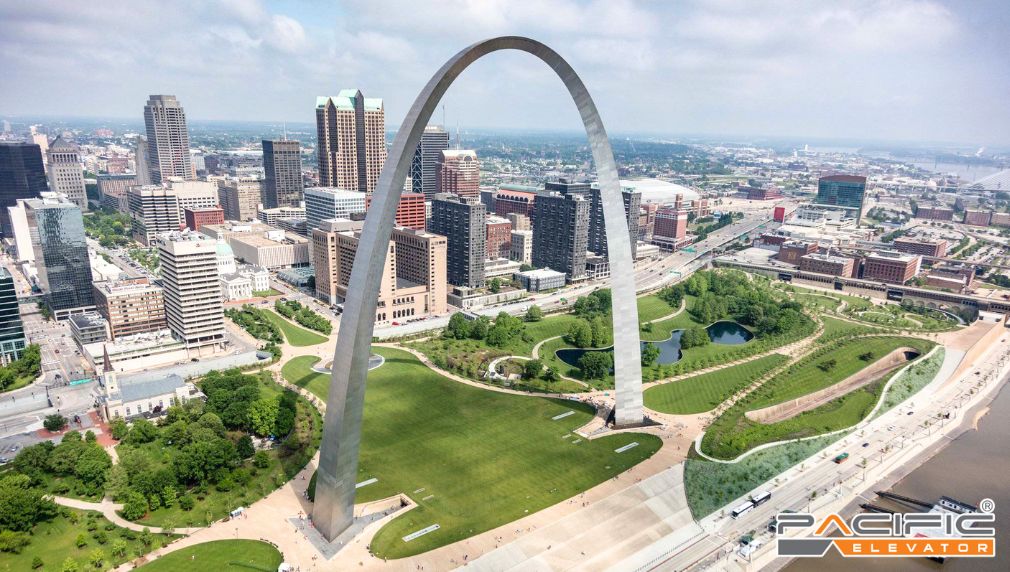 Đây là hệ thống thang máy độc đáo với khả năng di chuyển theo đường cong của Gateway Arch.