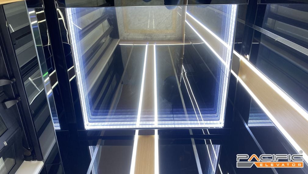 Thang máy không chỉ được cung cấp sự di chuyển nhanh chóng mà bạn còn có thể điều chỉnh màu sắc trong cabin thang máy tùy thích và còn có sự kết hợp của những chiếc loa bên trong để bạn có thể kết nối thư giãn tùy ý.