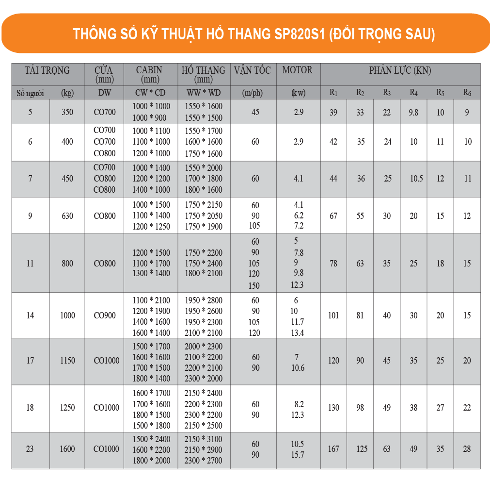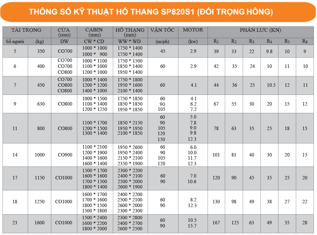 2. THÔNG TIN CHI TIẾT THANG MÁY TẢI HÀNG TECNO SP820S1