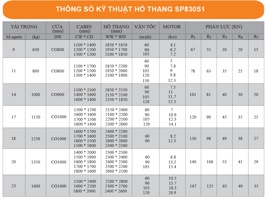 5. THÔNG TIN CHI TIẾT THANG MÁY TECNO SP830S1